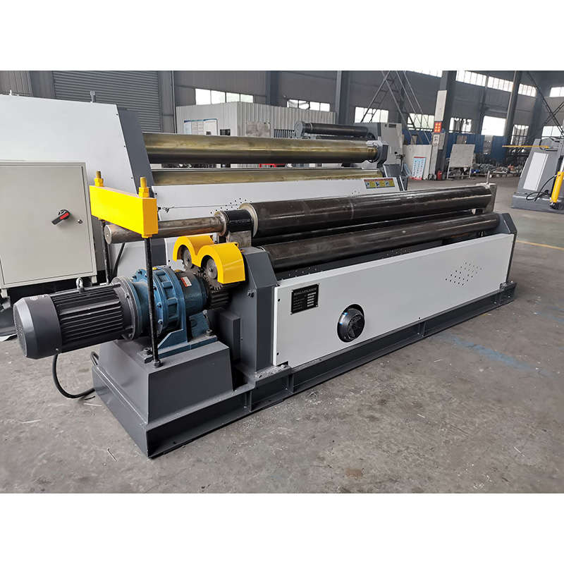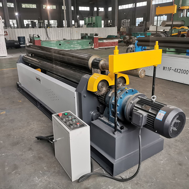 Вальцовочный станок W11-8×2500 — современная четырёхвалковая машина для гибки листа с упором на продуктивность и чистоту результата. Верхний валок работает как главный привод; гидравлическая система обеспечивает подъём и опускание, а нижний валок создаёт уверенный прижим заготовки через гидроцилиндр, стабилизируя процесс. Боковые валки размещены по обе стороны нижнего и перемещаются наклонно по направляющим, формируя кромку и поддерживая радиус, привод — через винтовую пару и червячный механизм.