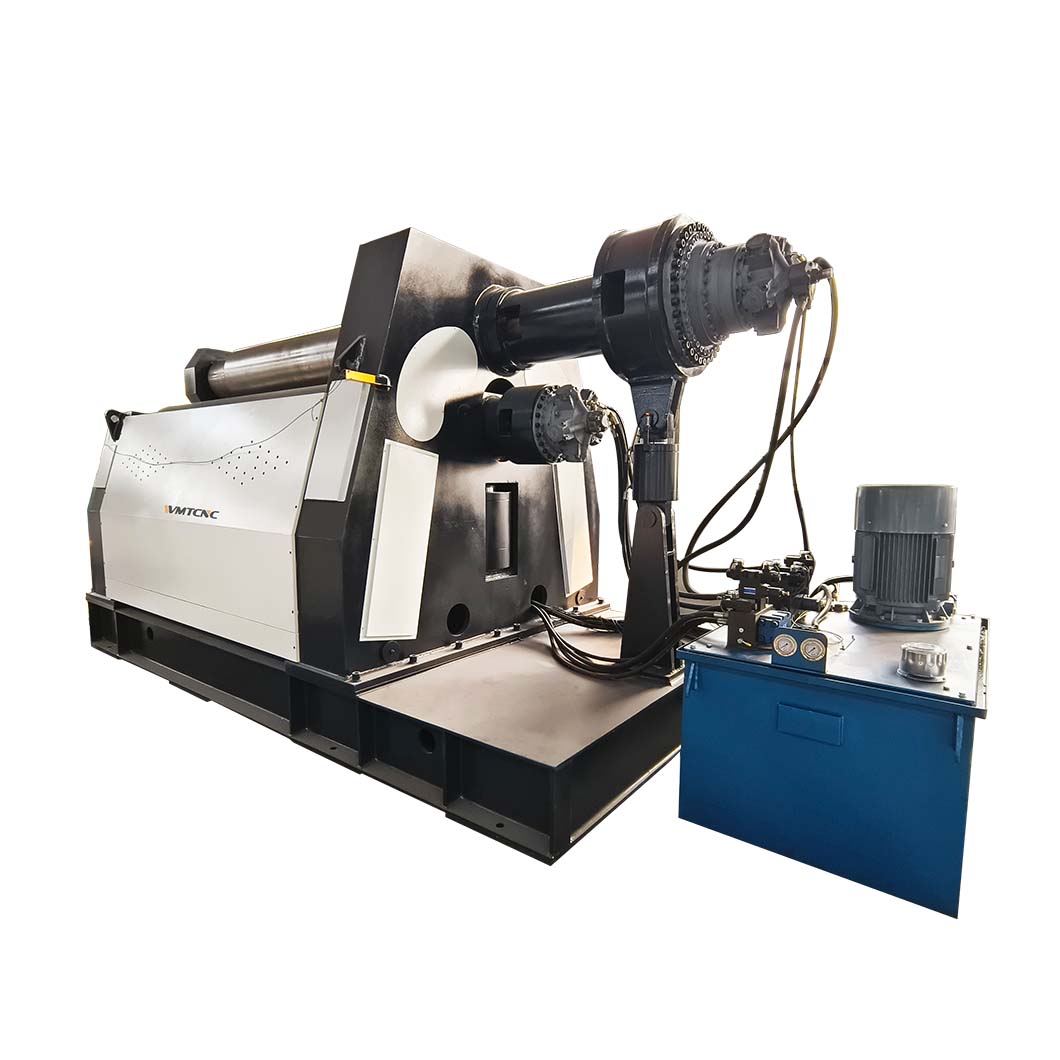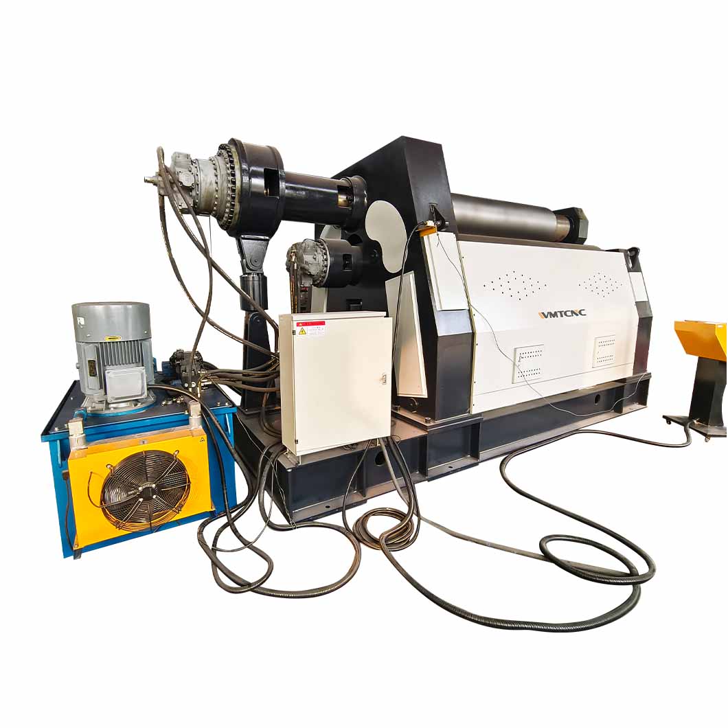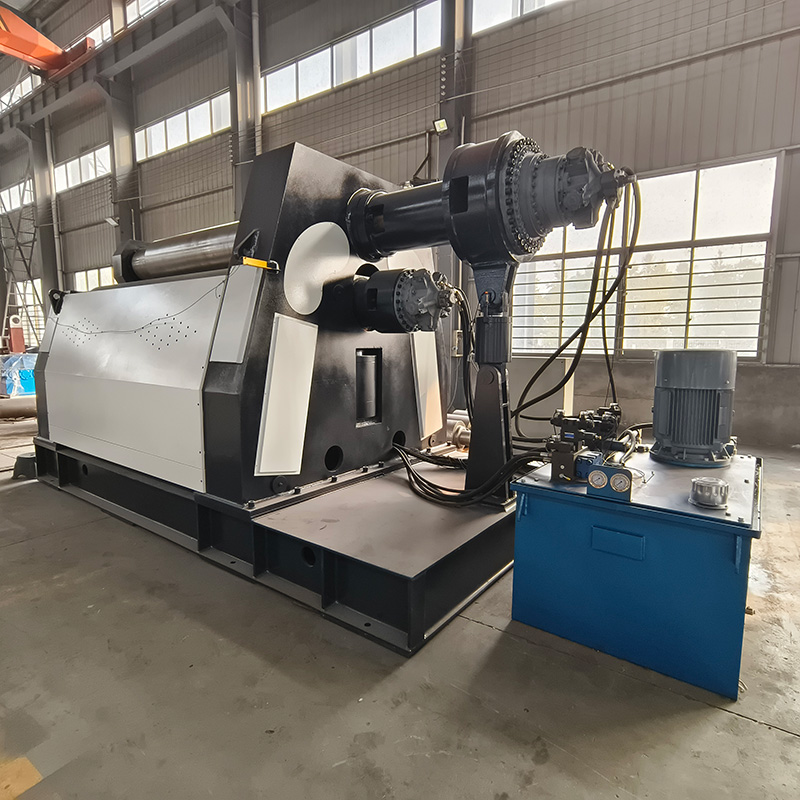 Нижний валок совершает вертикальное движение и через гидравлическое масло в гидроцилиндре воздействует на поршень, обеспечивая плотное прижатие листа. Боковые валки расположены по обе стороны от крышки нижнего валка и совершают наклонное движение вдоль направляющей, приводя в движение винт, гайку, червяк и ходовой винт.
